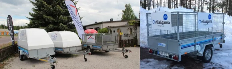 Hos Byggnetto finns två obromsade gallervagnar samt två obromsade släpvagnar med kåpa till uthyrning.