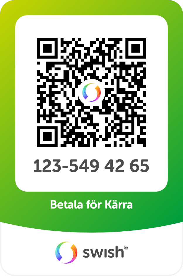 - Betala med Swish tillsammans vid bokning, uppge kärrans registrerings nr.